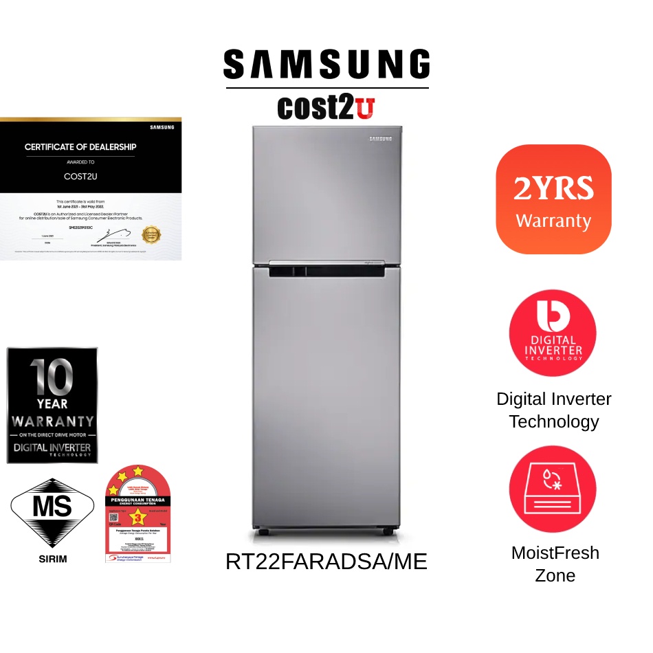 Samsung 270l Digital Inverter Twin Door Fridge Rt22faradsa Me Refrigerator Peti Ais Peti Sejuk 电冰箱 Shopee Malaysia
